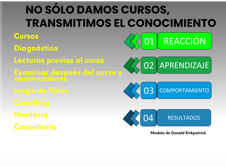 "Según Kirkpatrick Partners, el modelo de evaluación de cuatro niveles ayuda a medir el impacto real de la capacitación en el desempeño laboral y los resultados del negocio."